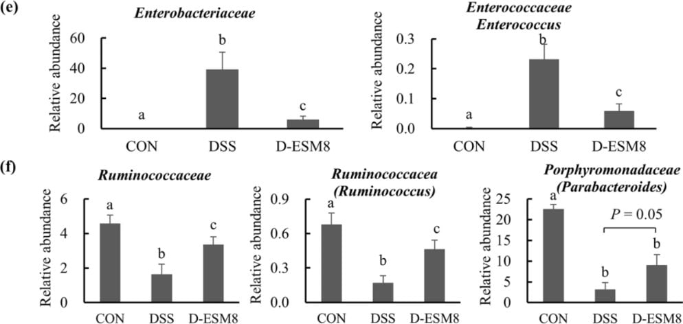 卵殻膜粉末を摂取することで、マウスの大腸炎モデルにおいて壊れた腸上皮の修復が促進されたほか、腸内細菌叢の乱れが改善し、有害な菌の増加が抑えられ、腸内環境が正常化傾向を示したことを証明しました。